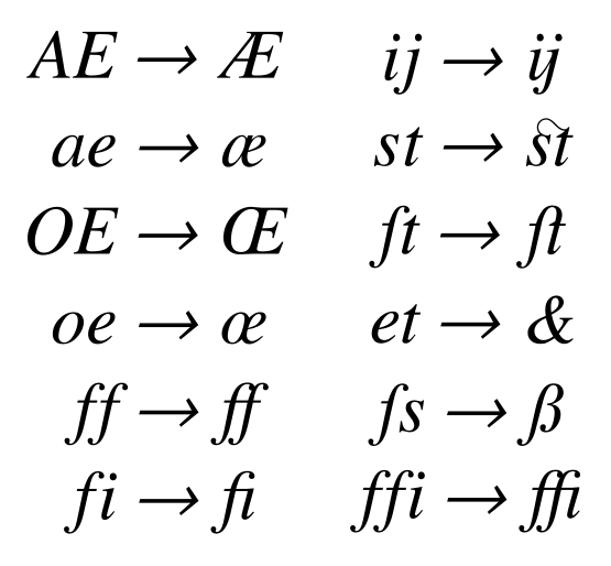 Ligaduras típicas en la escritura latina.