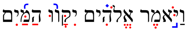Letras en negro, puntos en rojo y cantilación en azul.