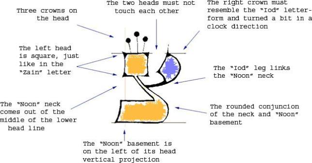 Mas de 150 reglas rigen como el alfabeto debe de trazado pro un escriba judío. No hace falta decirlo, no las nombraremos todas aquí, pero unas cuantas están abajo, incluyendo la norma para escribir la letra «tsadi», la cual consiste a su vez de las letras Yud y Nun. Para más información, este sitio tiene información extensiva al respecto.