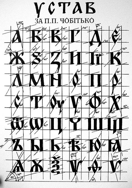 El alfabeto cirílico fue desarrollado por los eslavos en la Bulgaria del siglo 9. Se baso en las letras mayúsculas del griego, aumentado por las ligaduras y consonantes del antiguo alfabeto Glagolítico para cubrir sonidos inexistentes en el griego