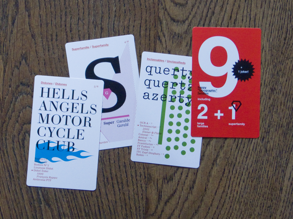 Interesante propuesta para juego de cartas para aprender sobre 9 diferentes familias tipográficas, mediante una muestra de las principales características de cada familia.