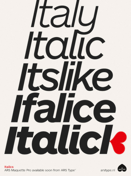 Algo que distingue a las neo-grotescas de las sans serif geometricas, humanísticas o de las grotescas clásicas, es su forma de trazo racionalizada, basada en la mecanizidad artesanal de las grotescas originales y aderezada con nuevas porporciones y elementos ya sean gemométricos o caligráficos, de esta manera las neo-grotescas han determinado la apariencia del diseño gráfico de la segunda mitad del siglo XX a la fecha, dándonos una sensación de limpieza, confianza y una mirada al futuro. Y es esta sensación la que ARS Maquette ha logrado rescatar, se siente como si fuera Helvetica pero sus formas son más limpias y pulidas, tiene una organicidad en su «ductus» y aún así se siente geométrica y ordenada, además de que su diseño esta contemplado para satisfacer las necesidades del diseño contemporáneo con dos variantes de itálicas, alternativas estilísticas, alternativa a Unicase que la hace excelente para títulos y logos, ligaduras, florituras, ornamentos y muchas características más que rara vez vemos en una tipografía sans serif