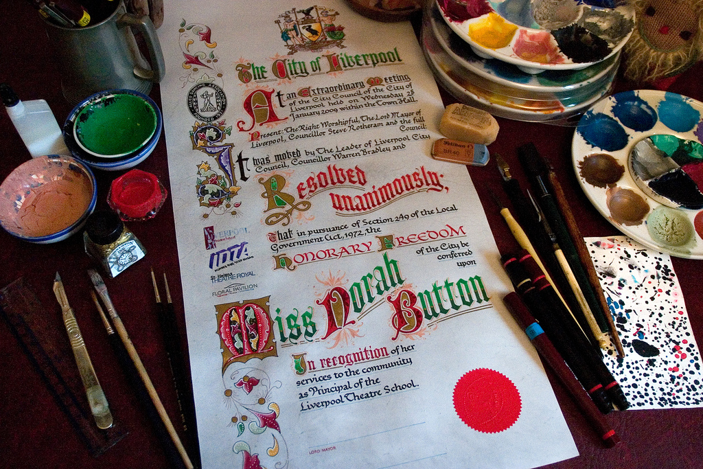 El impresionante trabajo de Melanie Davis, calígrafa de east Sussex en Inglaterra, con un trabajo profundamente medieval en espíritu, con uno vistosos y hermosamente ejecutados manuscritos iluminados, con muchos colores y ribeteados dorados. por favor disfruten mas en su sitio y en su Flickr, donde recomiendo este set y este otro.