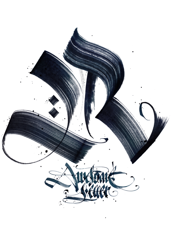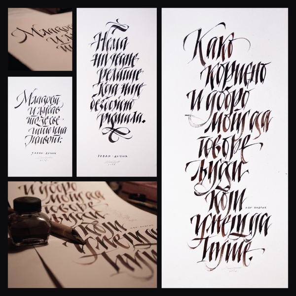 Desde Serbia tenemos el trabajo caligráfico de Lazar Dimitrijevic, que tiene un estilo muy expresivo y lleno de color, destaca su uso de la textura del trazo caligráfico, así como el enfasis que pone en la composición de la pieza.