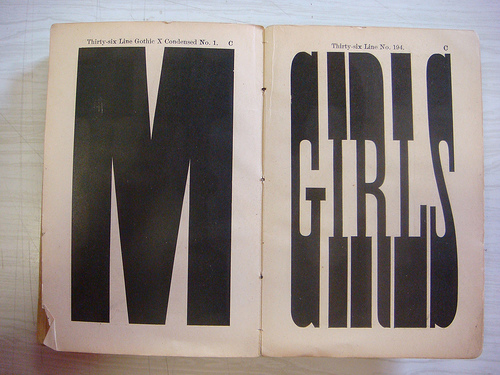 Y para finalizar, desde flickr Nick Sherman cuelga esta serie de fotos a un autentico libro de especimenes de tipos de madera del siglo XIX, pásenle a ver que es gratis.