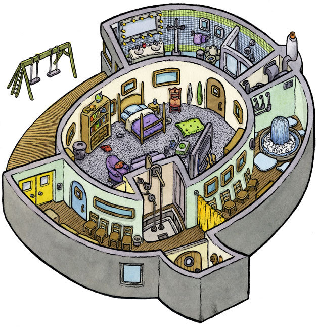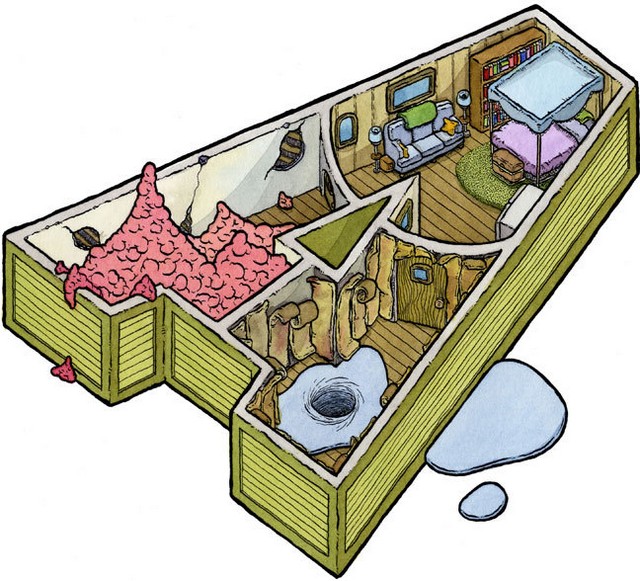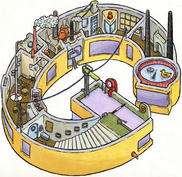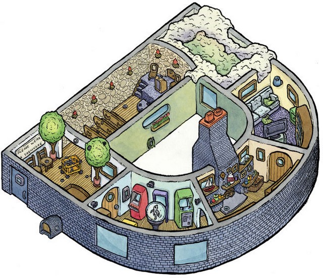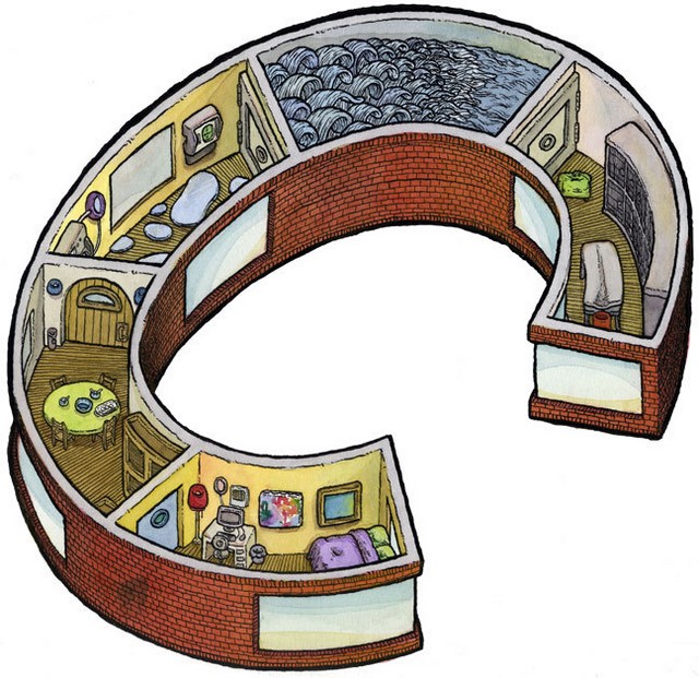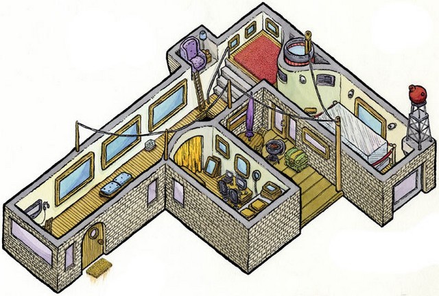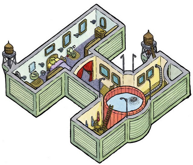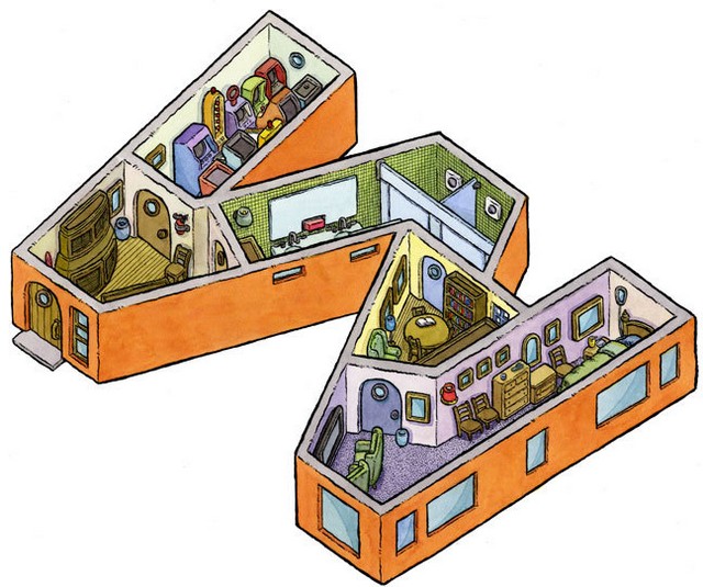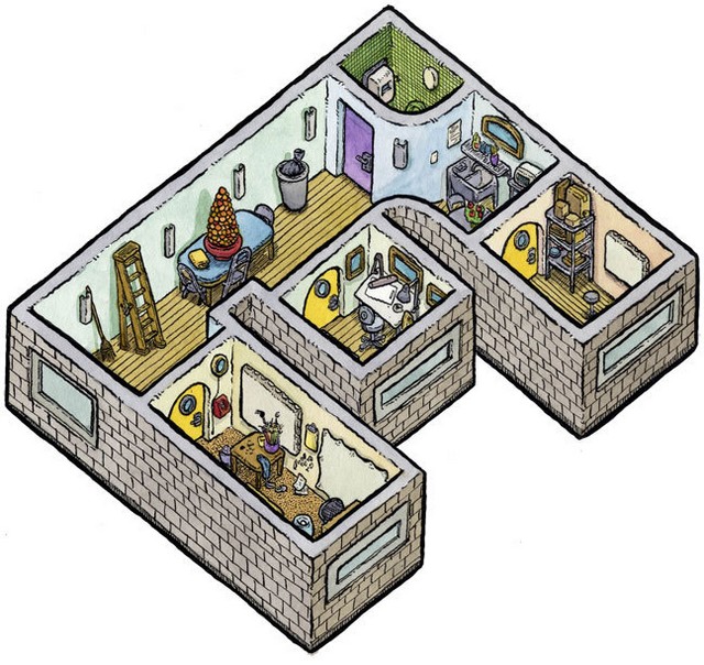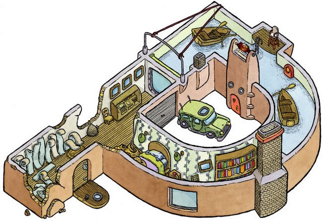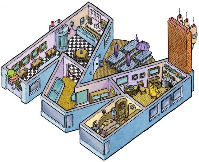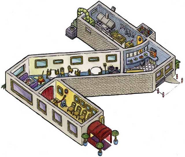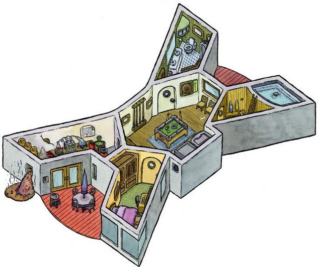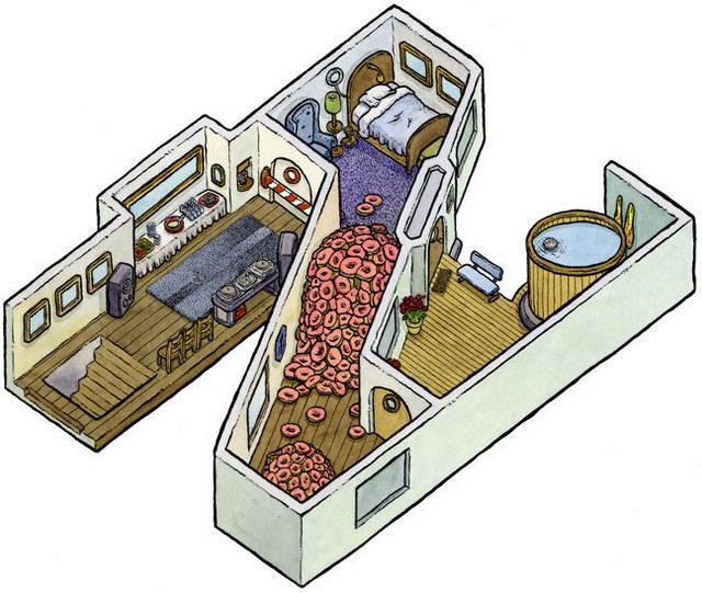 El ilustrador Scott Teplin ha hecho esta serie de lujosas residencias alfabeticas, totalmente amuebladas. Mas ilustraciones y blog por aca.