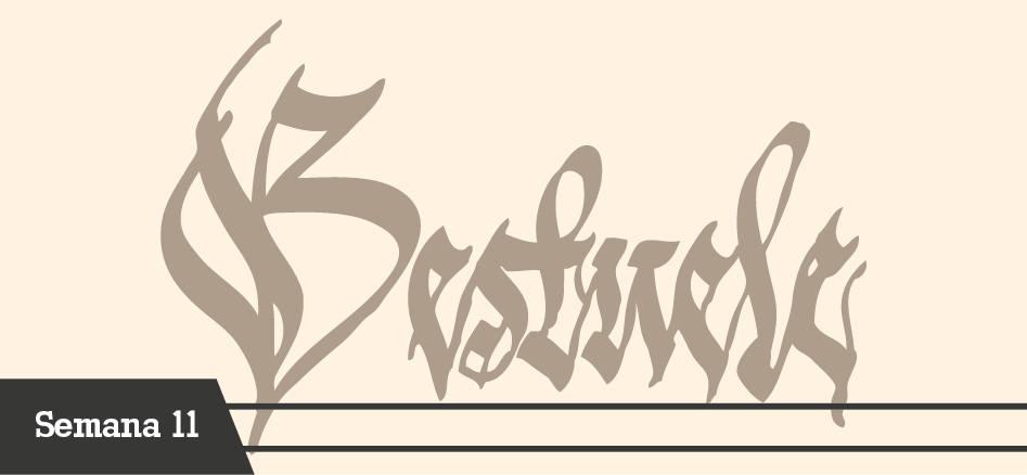 Una bastarda con trazo mas gestual, muchasde las letras fueron hechas con un solo trazo, utilizando todos los puntos de la plumilla, lo que le da un toque más espontaneo y rústico.