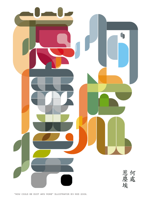 Interpretación de poemas Zen y de los caracteres chinos llevados a un nuevo nivel de expresión gráfica, sello característico del diseñador Chino Nod Young, de quien podemos también citar su «recorrido tipográfico por las calles de Beijing»