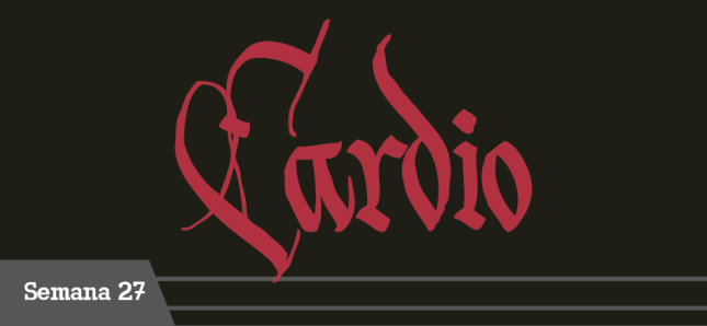 Cuarta entrega de Aritomania, Una textra cuadrata con aletas y espinas para formar un cuatro de vértice abierto, con algunas letras hechas para ser vistas igual de cabeza.