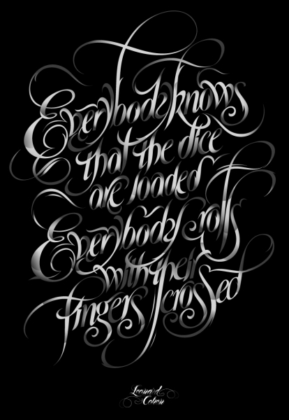 Laura Meseguer, diseñadora de Barcelona, especialiada en el diseño de tipografía en la Real Aademia de la Bellas Artes de La Haya, creadora de fuentes tipográficas a la medida, y de letras para diseño editorial y logortipos llenas de curvas que nos invitan a quedarnos a verlas con detenimiento y a disfrutarlas.