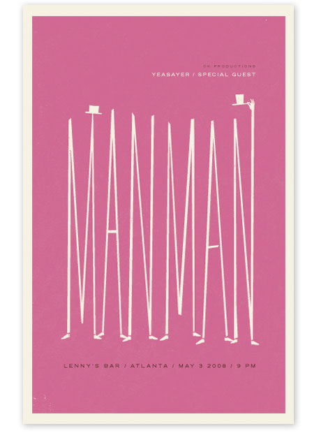 Alvin Diec es un diseñador gráfico de Atlanta enfocado en la producción de carteles para conciertos y que tiene como se llo esta vistosa relevancia tipográfica.