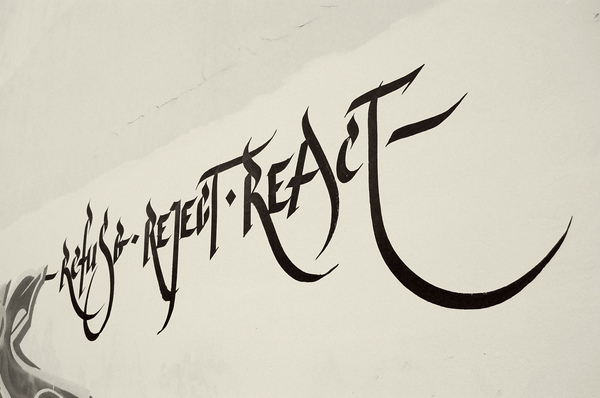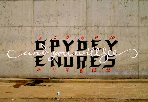 Usugrow es un artísta urbano japonés que empezó realizando gráfica para conciertos de punk y metal en su país natal, muchos despachos de otras partes del mundo, principalmente occidentales, quedaron encantadas con su trabajo, por lo cual ha desarrollado un estilo bastante único de lettering que combina el trazado típico de la caligrafía japonesa con la forma de los carácteres latinos, si quieren saber más pueden ver su página oficial.